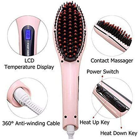 Item features: For thick hair, select higher temperature(210-230), for normal textured hair,select moderate temperature(190-210), for delicate, fine hair,you can select temperature( 170-200) selecting low temperature will slightly slower the process of making hair style. Press the power button for 3 seconds, and press for 3 seconds to off. Straighten iron comb enables doing your hair with 0 burns and 0 harm. All the ladies will be crazy for its advantage: Lcd screen display . 360 degree rotatable wire.